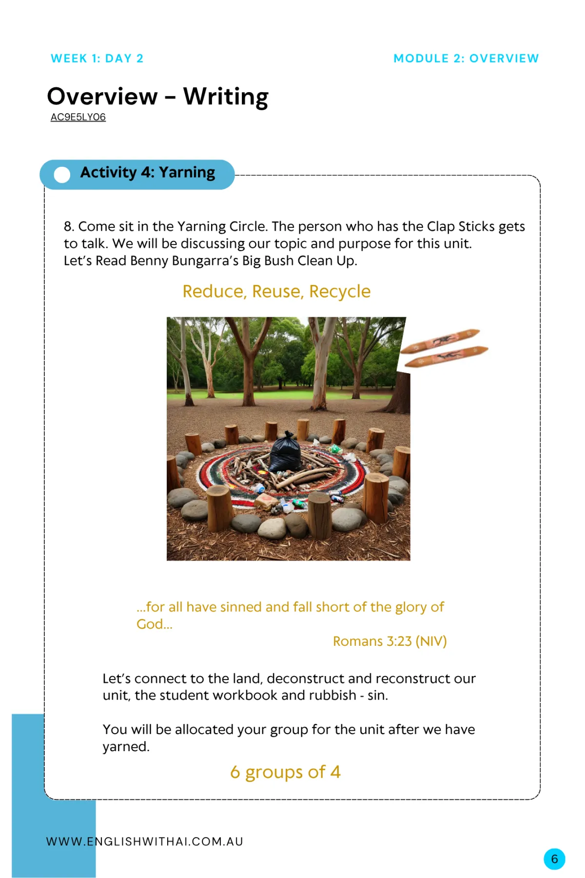 Weekly lessons with resource lists.